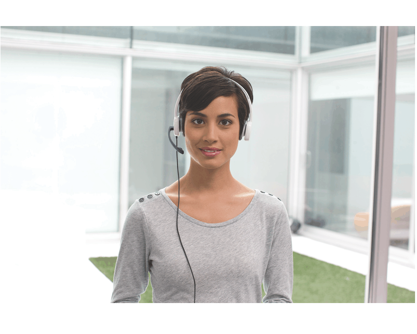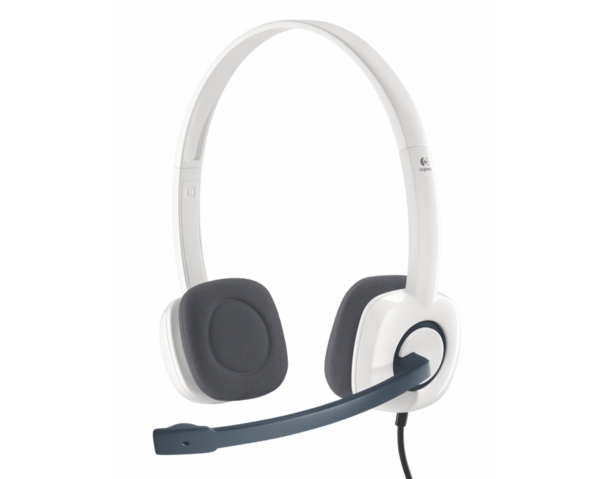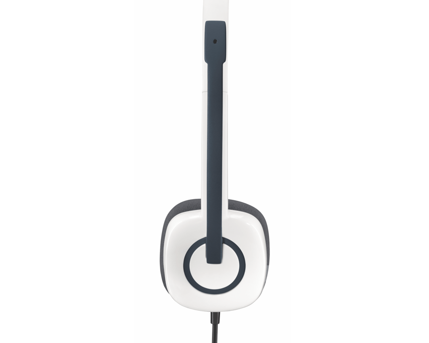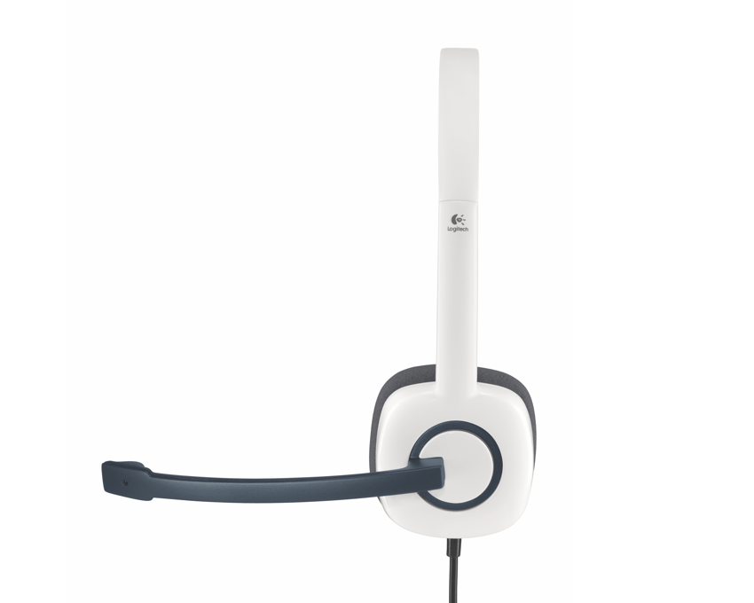 Logitech® Stereo Headset H150. Hable con claridad. Las llamadas nítidas con sonido estéreo facilitan el contacto con la gente. El micrófono con supresión de ruido reduce los molestos ruidos de fondo, para que le oigan claramente. Puede colocar el micrófono en el lado izquierdo o el derecho. Y también puede girarlo hacia arriba y apartarlo cuando no lo use. Llévelo a su gusto con la diadema ajustable y las almohadillas acolchadas. Los sencillos controles integrados en el cable facilitan el ajuste de volumen y el silenciamiento del micrófono. También es fácil de configurar. Basta con conectar el casco telefónico a las tomas de entrada y salida de 3,5 mm en el ordenador.