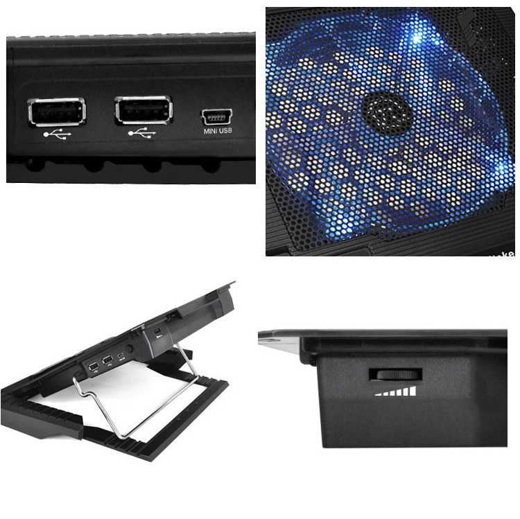 Cooler para portátiles de 10'' a 17' con diseño de Metal Mesh y un ventilador de 200 mm con LED azul.