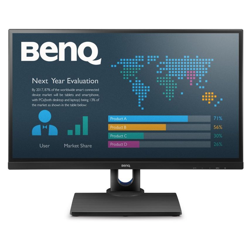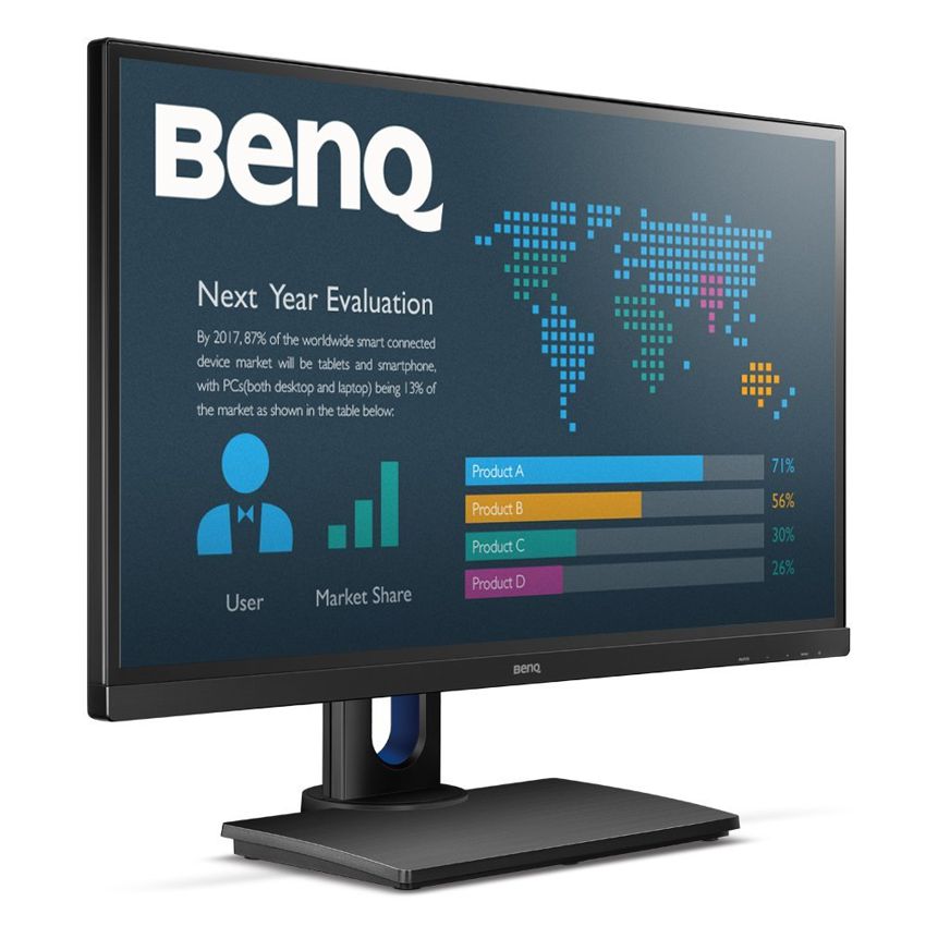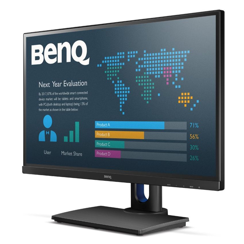 Descripción Benq BL2706HT. Diagonal de la pantalla: 68,6 cm (27"), Brillo de pantalla: 250 cd / m², Resolución de la pantalla: 1920 x 1080 Pixeles. Color del producto: Negro. Ángulo de giro (alcance): -45 - 45°, Ángulo de inclinación: -5 - 22°, Ajuste de altura: 14 cm. Voltaje de entrada AC: 90-264 V, Consumo de energía (inactivo): 0,5 W, Consumo energético: 55 W. Peso: 4,28 kg, Ancho del dispositivo (con soporte): 616,7 mm, Profundidad dispositivo (con soporte): 239,6 mm