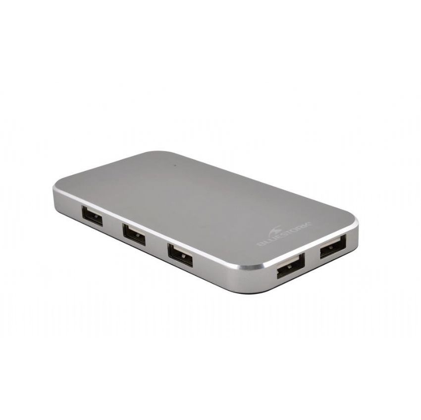 Descripción Bluestork HUB-USB2-7U-PS. Interfaz de host: USB 2.0, Interfaces de concentradores: USB 2.0. Velocidad de transferencia de datos: 480 Mbit/s. Color del producto: Aluminio. Peso: 172 g. Ancho del paquete: 102 mm, Profundidad del paquete: 58 mm, Altura del paquete: 206 mm