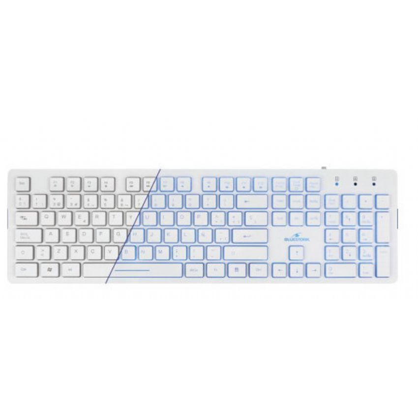 Descripción Bluestork KB-LUMI. Formato del teclado: Estándar, Estilo de teclado: Derecho, Tecnología de conectividad: Alámbrico, Interfaz del dispositivo: USB, Diseño de teclado: QWERTY. Tipo de retroiluminación: LED. Uso recomendado: Universal. Color del producto: Blanco