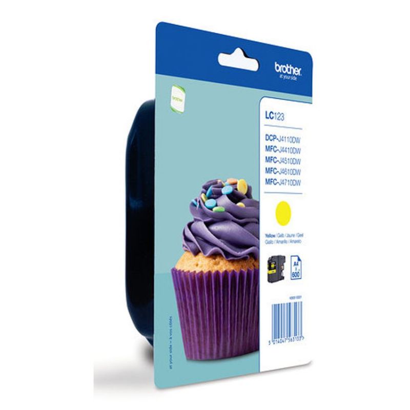 Descripción Brother LC-123YBP. Tipo: Original, Tipo de tinta: Tinta a base de pigmentos, Colores de impresión: Amarillo. Tipo de embalaje: Ampolla