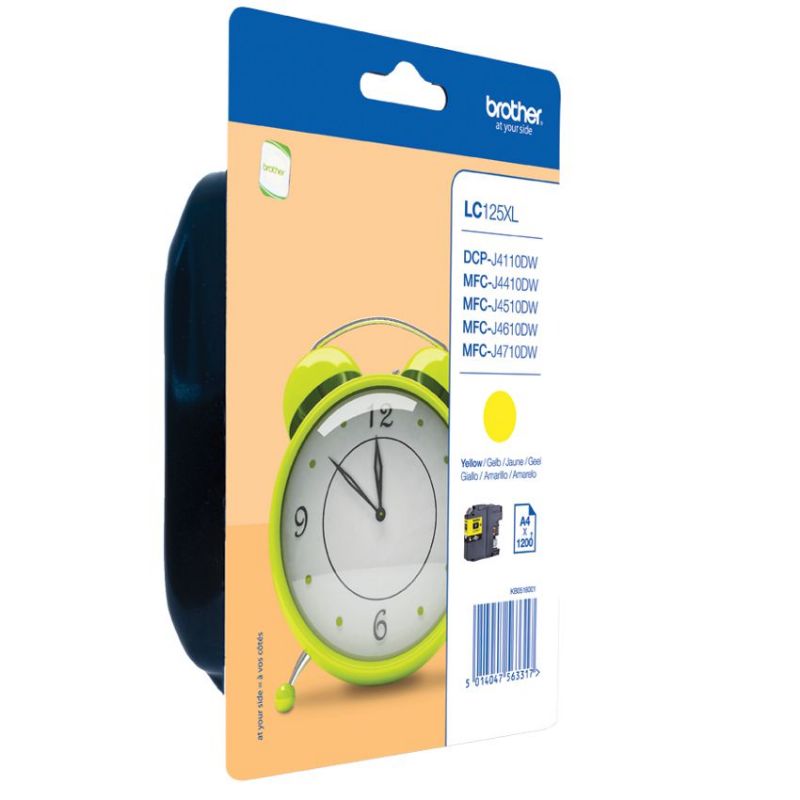 Descripción Brother LC-125XLYBP. Tipo: Original, Tipo de tinta: Tinta a base de pigmentos, Colores de impresión: Amarillo. Tipo de embalaje: Ampolla