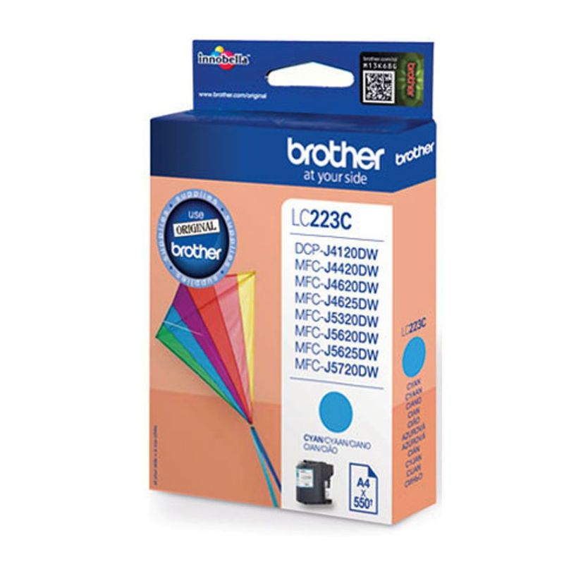 Descripción Brother LC-223CBP. Tipo: Original, Colores de impresión: Cian, Compatibilidad: Brother MFC-J4420DW, MFC-J4625DW. Tipo de embalaje: Ampolla. Pie de página con producción de páginas: ISO / IEC 24711, Dimensiones de papel: A4