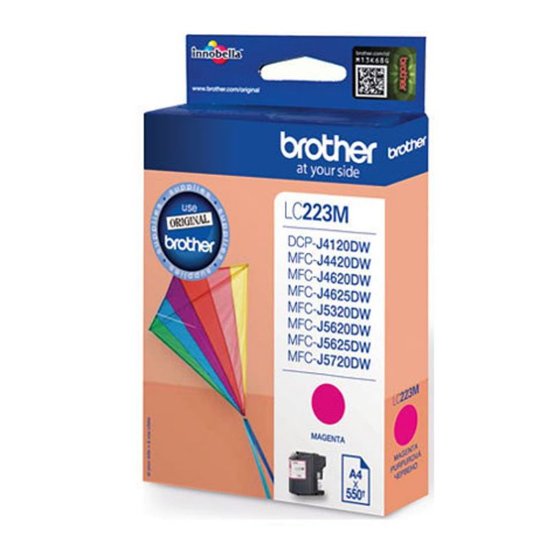Descripción Brother LC-223MBP. Tipo: Original, Tipo de tinta: Tinta a base de pigmentos, Colores de impresión: Magenta. Tipo de embalaje: Ampolla. Pie de página con producción de páginas: ISO / IEC 24711, Dimensiones de papel: A4