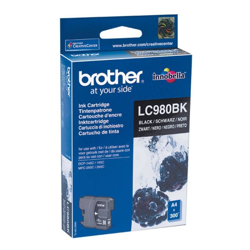 Descripción Brother LC-980BK. Tipo: Original, Tipo de tinta: Tinta a base de pigmentos, Colores de impresión: Negro. Ancho: 74 mm, Profundidad: 16 mm, Altura: 93 mm. Dimensiones del embalaje (alto x alto x peso): 86 x 25 x 123 mm, Cantidad: 1 pieza(s)