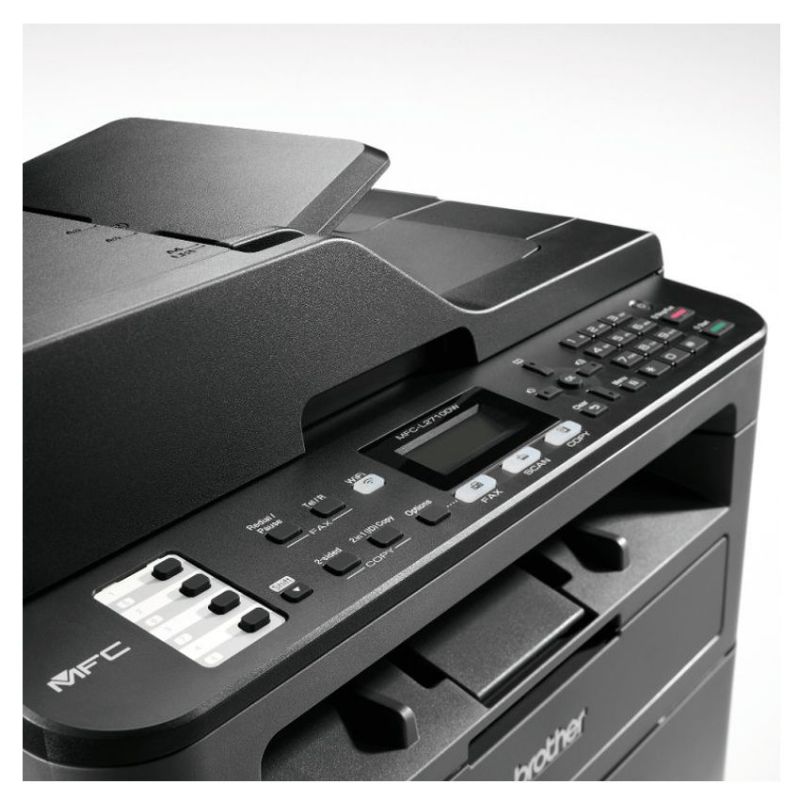 Descripción Brother MFC-L2710DW. Tecnología de impresión: Laser, Impresión: Impresión en blanco y negro, Resolución máxima: 1200 x 1200 DPI. Copiando: Copias en blanco y negro, Resolución máxima de copia: 600 x 600 DPI. Escaneando: Escaneo a color, Resolución óptica de escáner: 600 x 600 DPI. Enviando por fax: Envío y recepción de faxes en blanco y negro. Tamaño máximo de papel ISO A-series: A4. Wifi. Color del producto: Negro, Gris