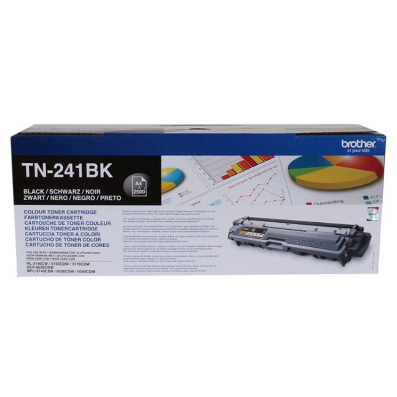Descripción Brother TN-241BK. Rendimiento de impresión de tóner negro: 2500 páginas, Colores de impresión: Negro, Cantidad por paquete: 1 pieza(s)