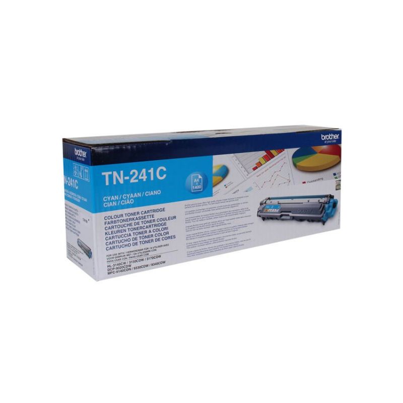 Descripción Brother TN-241C. Rendimiento de impresión de tóner de color: 1400 páginas, Colores de impresión: Cian, Cantidad por paquete: 1 pieza(s)