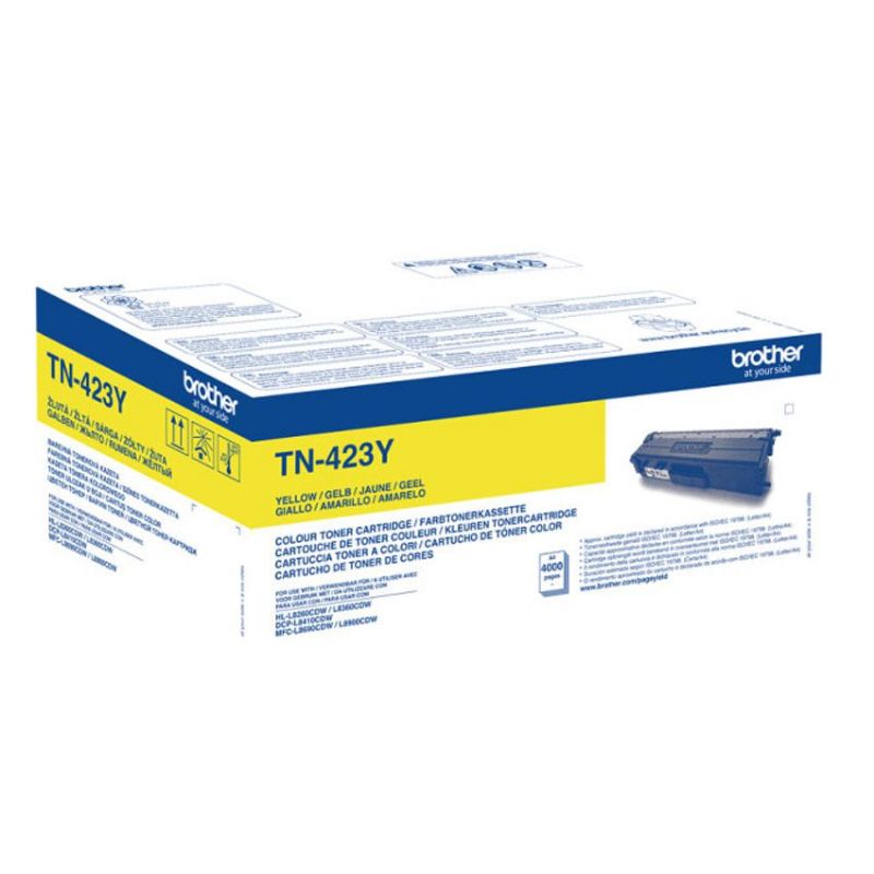 Descripción Brother TN-423Y. Rendimiento de impresión de tóner de color: 4000 páginas, Colores de impresión: Amarillo, Cantidad por paquete: 1 pieza(s)