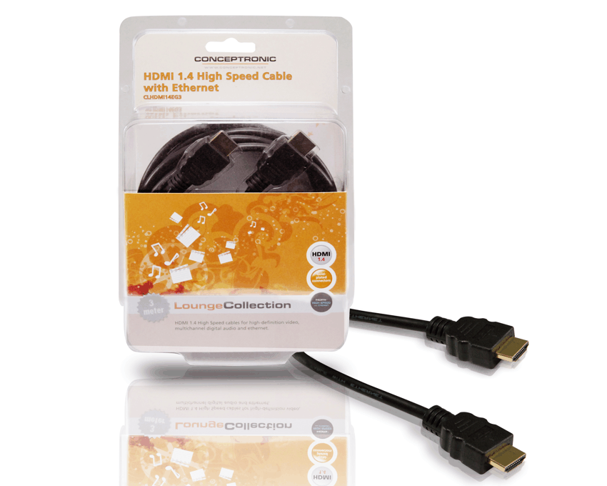 Cable HDMI 1.4 Conceptronic High Speed con Ethernet Gold 3 m CLHDMI14EG3