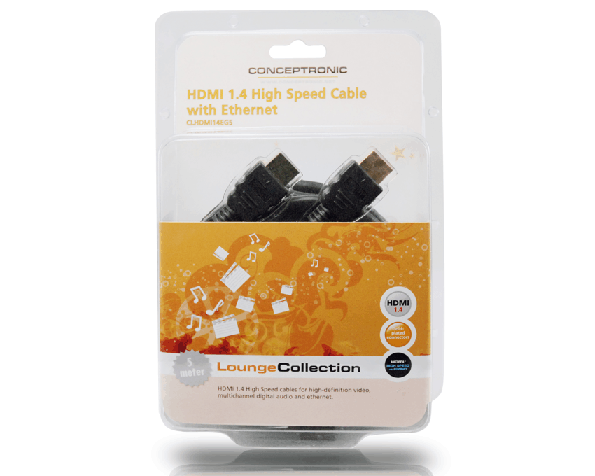 Cable HDMI 1.4 Conceptronic High Speed con Ethernet Gold 5 m CLHDMI14EG5