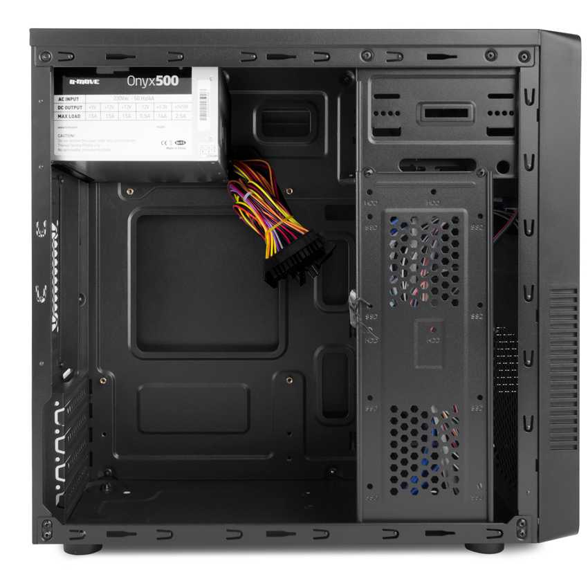 Descripción Onyx es una caja de dimensiones pequeñas compatible con placas base micro ATX. Incluye una fuente de alimentación de 500W y tiene capacidad para instalar hasta 3 ventiladores. En el frontal encontrarás dos puertos USB 2.0 y un lector de tarjetas de fácil acceso.