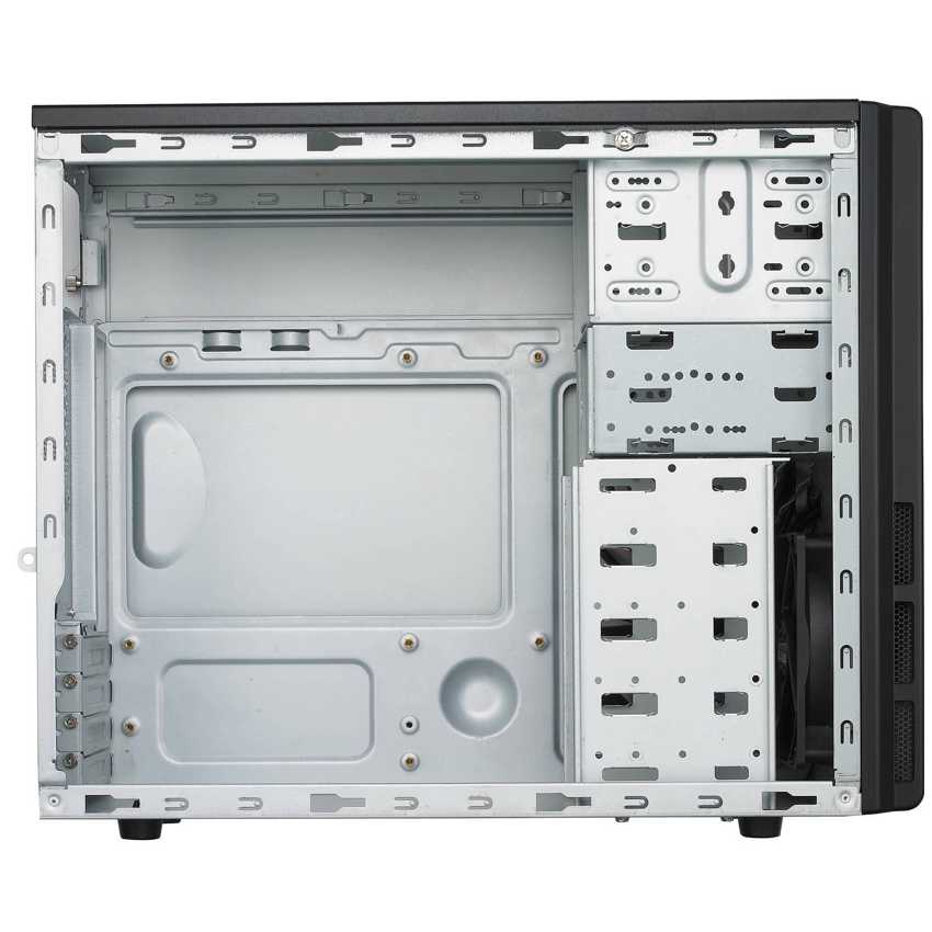 Especificaciones Factor de forma: Sin especificar Tipo: PC Materiales: De plástico, Acero Número de puertos 5.25": 2 Número de puertos 3.5": 1 Formas de factor de tarjeta madre soportadas: Micro-ATX Color del producto: Negro Número de bahías internas de 3,5 ": 5 Ventana lateral: No Altavoces incorporados: No Número de ranuras de expansión: 4 Fuente de alimentación incluida: No Ubicación de fuente de alimentación: Superior Cantidad de puertos USB 2.0: 1 USB 3.0 (3.1 Gen 1) Type-A ports quantity: 1 Entrada de audio: Si Salida de audio: Si Ventiladores frontales instalados: 1x 120 mm Diámetro de ventiladores frontales soportados: 120 mm Diámetro de ventiladores secundarios soportados: 90 mm Diámetro de ventiladores traseros soportados: 80,90 mm Tamaños de disco duro soportados: 3.5" Ancho: 18 cm Profundidad: 44 cm Altura: 35,2 cm Peso: 4 kg