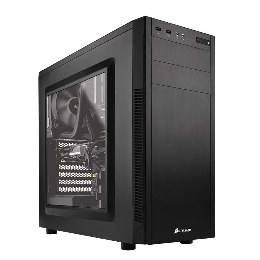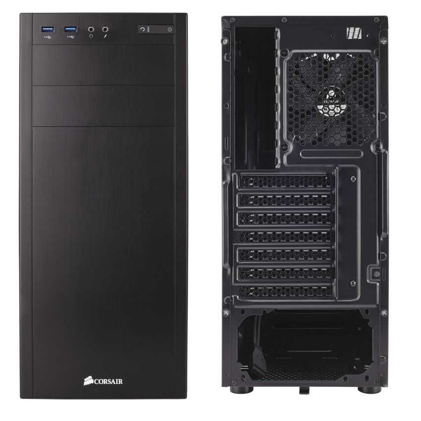 Descripción Corsair Carbide 100R. Factor de forma: Midi-Tower, Tipo: PC, Materiales: Acero. Diámetro de ventiladores frontales soportados: 120, 140 mm, Diámetro de ventiladores traseros soportados: 12 cm, Diámetros de ventiladores superiores soportados: 12 cm. Tamaños de disco duro soportados: 63, 5, 88, 9 mm (2.5, 3.5"). Ancho: 47,1 cm, Profundidad: 20 cm, Altura: 43 cm