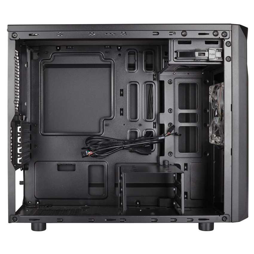 Descripción Corsair Carbide SPEC-M2. Factor de forma: Micro-Tower, Tipo: PC, Materiales: Acero. Ubicación de fuente de alimentación: Fondo. Ventiladores frontales instalados: 1x 120 mm, Diámetro de ventiladores frontales soportados: 120 mm, Diámetro de ventiladores traseros soportados: 120 mm. Tamaños de disco duro soportados: 2.5,3.5". Ancho: 19,8 cm, Profundidad: 44,8 cm, Altura: 37,8 cm
