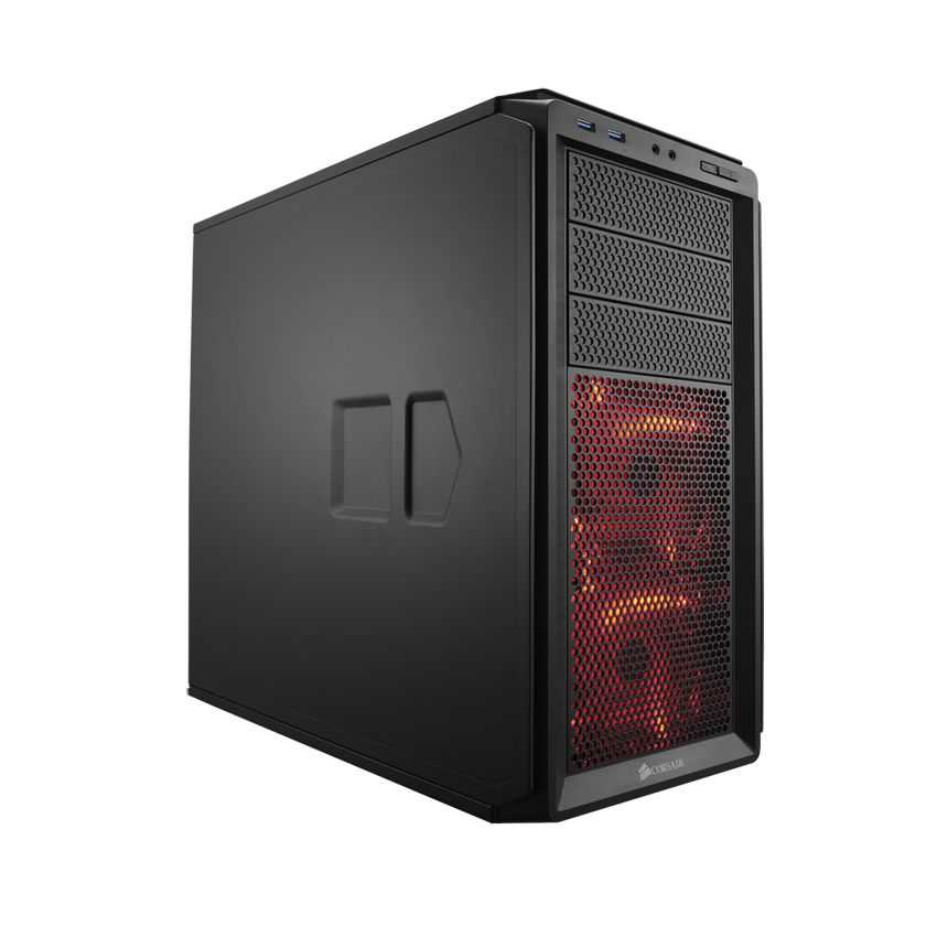 Descripción Corsair CC-9011036-WW. Factor de forma: Midi-Tower, Tipo: PC, Formas de factor de tarjeta madre soportadas: ATX. Ventiladores frontales instalados: 2x 120 mm, Diámetro de ventiladores frontales soportados: 12 cm, Ventiladores traseros instalados: 1x 120 mm. Tamaños de disco duro soportados: 63, 5, 88, 9 mm (2.5, 3.5"). Ancho: 49 cm, Profundidad: 27 cm, Altura: 56,5 cm. Peso del paquete: 7,18 kg