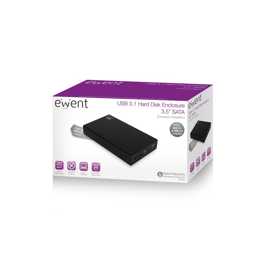 Descripción Ewent EW7056. Tipos de unidades de almacenamiento admitidas: Unidad de disco duro, Interfaces de disco de almacenamiento soportados: SATA. Versión USB: 3.0 (3.1 Gen 1), Conector USB: USB Type-B. Color del producto: Negro, Indicadores LED: Poder, Si, Materiales: ABS sintéticos