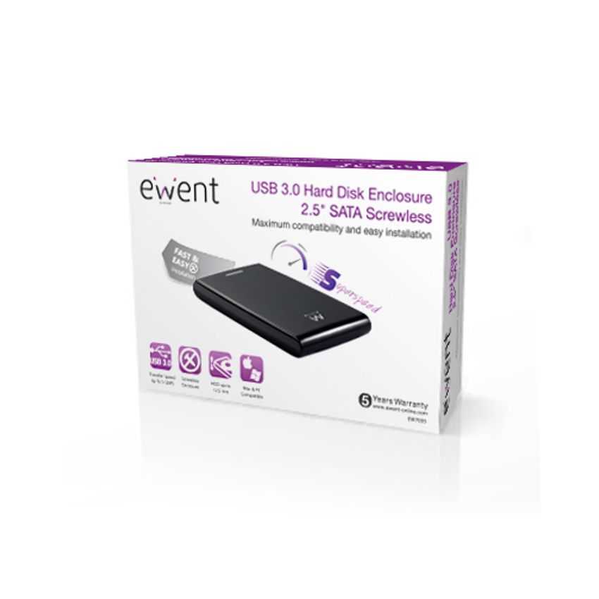 - Caja de Disco Duro HDD/SSD 2,5" - USB 3.0 de alta velocidad. Compatible con USB 2.0 - Compatible con todos los discos duros SATA 2,5" (máx. 1,5 TB) - Plug & Play - Instalación fácil con diseño sin tornillos - Piloto LED