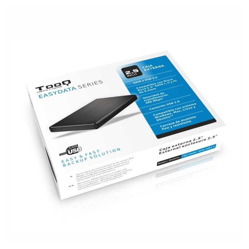 Especificaciones Número de unidades de almacenamiento compatibles: 1 Tipos de unidades de almacenamiento admitidas: Unidad de disco duro Interfaces de disco de almacenamiento soportados: SATA, Serial ATA II, Serial ATA III Tamaño de la unidad de almacenamiento: 6,35 cm (2.5") Altura de la unidad de almacenamiento: 9,5 mm Conexión USB: Si Versión USB: 2.0 Género del conector USB: Femenino Cantidad de puertos USB 2.0: 1 Color del producto: Negro Indicadores LED: Operación Materiales: Aluminio Velocidad de transferencia de datos: 0,48 Gbit/s Sistemas de archivos soportados: ext2, FAT32, HFS, NTFS USB con suministro de corriente: Si Velocidad de transferencia de datos: 480 Mbit/s Número de discos duros soportados: 1 Peso: 80g Ancho: 7,6 cm Profundidad: 13 cm Altura: 1,2 cm Ancho del paquete: 13 cm Profundidad del paquete: 17,4 cm Altura del paquete: 4 cm Peso del paquete: 275g Manual de usuario: Si Tornillos incluídos: Si Cables incluidos: USB