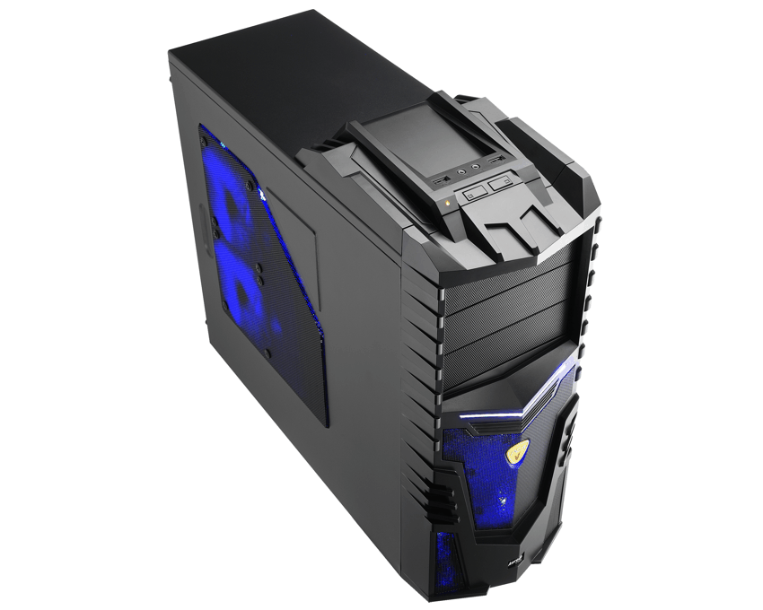 Como un guerrero con su armadura en el campo de batalla, el fiero aspecto de la caja Aerocool X-Warrior es uno de los más impactactes de las cajas Gaming.