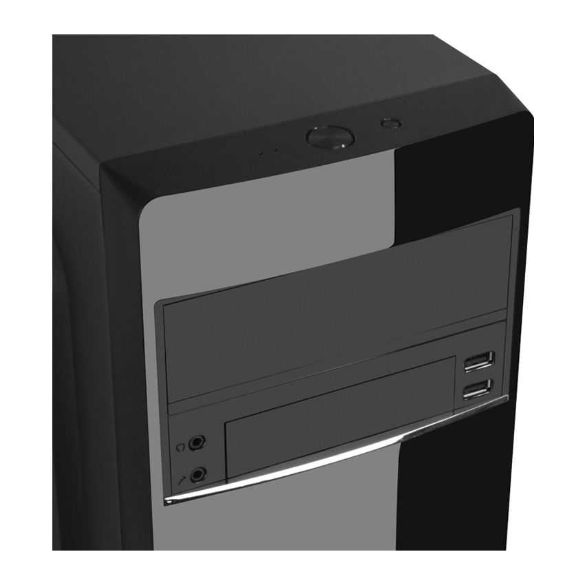 Especificaciones Factor de forma: Mini-Tower Tipo: PC Materiales: De plástico, SPCC Número de puertos 5.25": 1 Número de puertos 3.5": 2 Formas de factor de tarjeta madre soportadas: Micro-ATX Color del producto: Negro Número de bahías 2.5: 2 Número de bahías internas de 3,5 ": 1 Number of external 5.25" bays: 1 Ventana lateral: No Adecuado para: Hogar / Oficina Altavoces incorporados: No Número de ranuras de expansión: 2 Altura máxima de la CPU más fresco: 14,7 cm Máxima longitud de la tarjeta de gráficos: 31,5 cm Fuente de alimentación incluida: Si Fuente de alimentación: 500W Cantidad de puertos USB 2.0: 2 Entrada de audio: Si Salida de audio: Si Máximo de ventiladores frontales: 1 Diámetro de ventiladores frontales soportados: 80, 120 mm Máximos ventiladores laterales: 1 Diámetro de ventiladores secundarios soportados: 12 cm Máximo de ventiladores posteriores: 1 Diámetro de ventiladores traseros soportados: 8 cm Tamaños de disco duro soportados: 63,5, 88,9 mm (2.5, 3.5") Ancho: 18,6 cm Profundidad: 37,7 cm Altura: 36 cm Peso: 2,4 kg