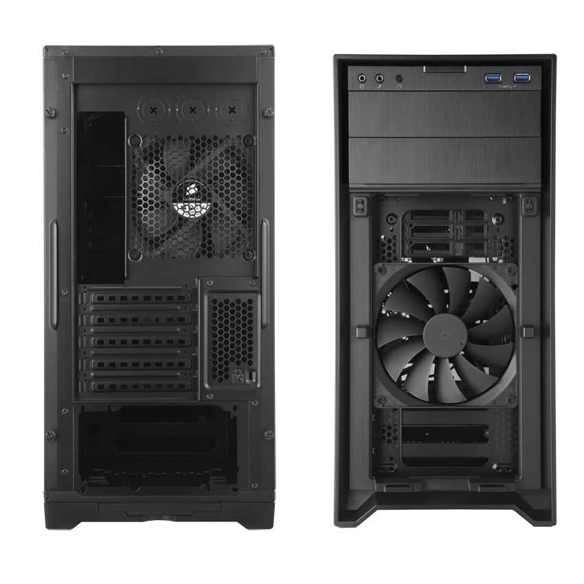Especificaciones Factor de forma: Midi-Tower Tipo: PC Materiales: Aluminio Número de puertos 5.25": 2 Número de puertos 3.5": 2 Formas de factor de tarjeta madre soportadas: Micro-ATX, Mini-ITX Color del producto: Negro Número de bahías 2.5: 2 Ventana lateral: Si Altavoces incorporados: No Número de ranuras de expansión: 5 Altura máxima de la CPU más fresco: 16 cm Máxima longitud de la tarjeta de gráficos: 38 cm Máxima longitud de PSU: 18 cm Fuente de alimentación incluida: No Entrada de audio: Si Salida de audio: Si Cantidad de puertos USB 3.0: 2 Ventiladores frontales instalados: 1x 140 mm Ventiladores traseros instalados: 1x 120 mm Tamaños de disco duro soportados: 8,89 cm (3.5")