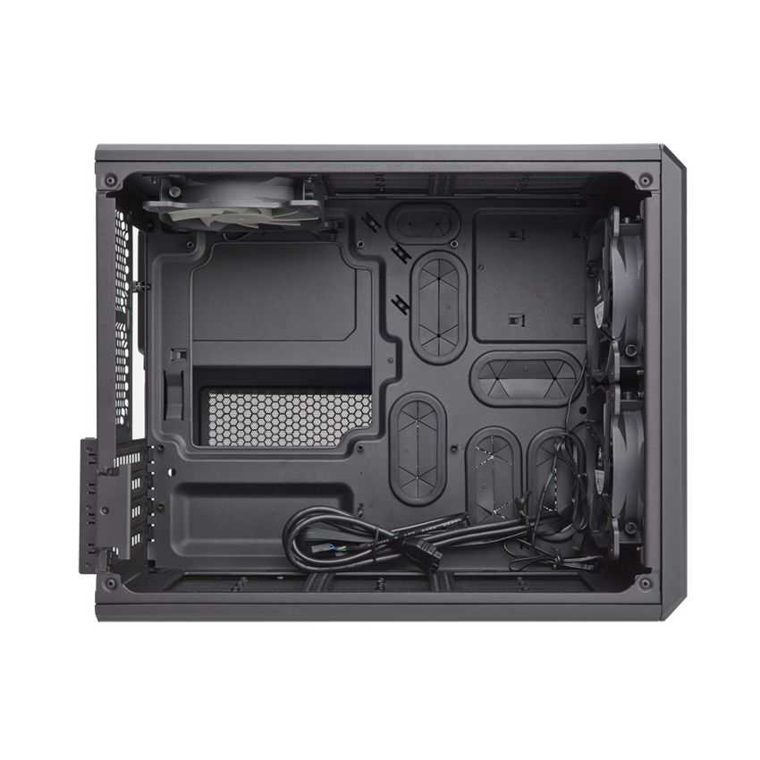 Especificaciones Factor de forma: Cubo Tipo: PC Materiales: Acero Número de puertos 3.5": 3 Formas de factor de tarjeta madre soportadas: Micro-ATX, Mini-ITX Color del producto: Negro Número de bahías 2.5: 3 Ventana lateral: Si Iluminación: Si Iluminación ubicación: Lado Iluminación de color: Azul Número de ranuras de expansión: 4 Altura máxima de la CPU más fresco: 12 cm Máxima longitud de la tarjeta de gráficos: 29 cm Máxima longitud de PSU: 24 cm Fuente de alimentación incluida: No Entrada de audio: Si Salida de audio: Si Cantidad de puertos USB 3.0: 2 Ventiladores frontales instalados: 2x 120 mm Máximo de ventiladores frontales: 2 Diámetro de ventiladores frontales soportados: 12 cm Máximos ventiladores laterales: 1 Diámetro de ventiladores secundarios soportados: 12 cm Ventiladores traseros instalados: 1x 120 mm Máximo de ventiladores posteriores: 2 Diámetro de ventiladores traseros soportados: 80, 120 mm Máximos ventiladores superiores: 2 Diámetros de ventiladores superiores soportados: 12 cm Máximos ventiladores inferiores: 2 Diámetro de ventiladores inferiores secundarios soportados: 12 cm Tamaños de disco duro soportados: 63,5, 88,9 mm (2.5, 3.5") Indicadores LED: Si Botón de restaurar: Si Ancho: 26 cm Profundidad: 39,7 cm Altura: 32 cm Peso: 5,6 kg
