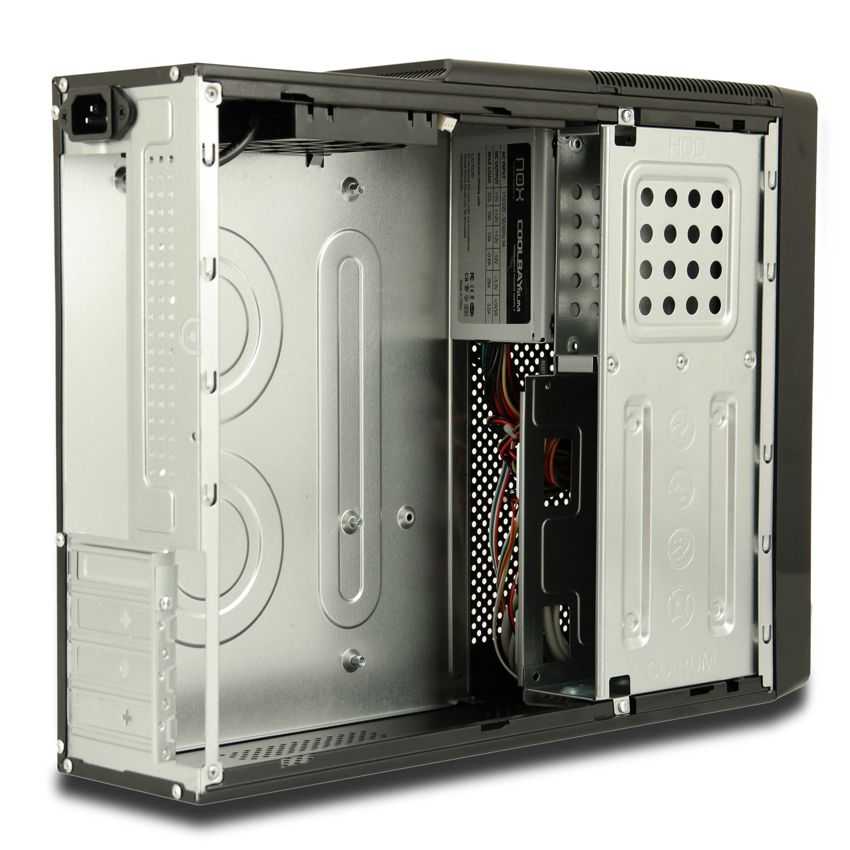 Descripción NOX Coolbay Slim. Materiales: ABS sintéticos, SGCC, Grosor de material: 0.5 mm. Fuente de alimentación: 450 W, Ubicación de fuente de alimentación: Superior. Ventiladores superiores instalados: 1x 80 mm. Ancho: 99 mm, Profundidad: 365 mm, Altura: 295 mm. Tipo de fuente de alimentación: AC/DC