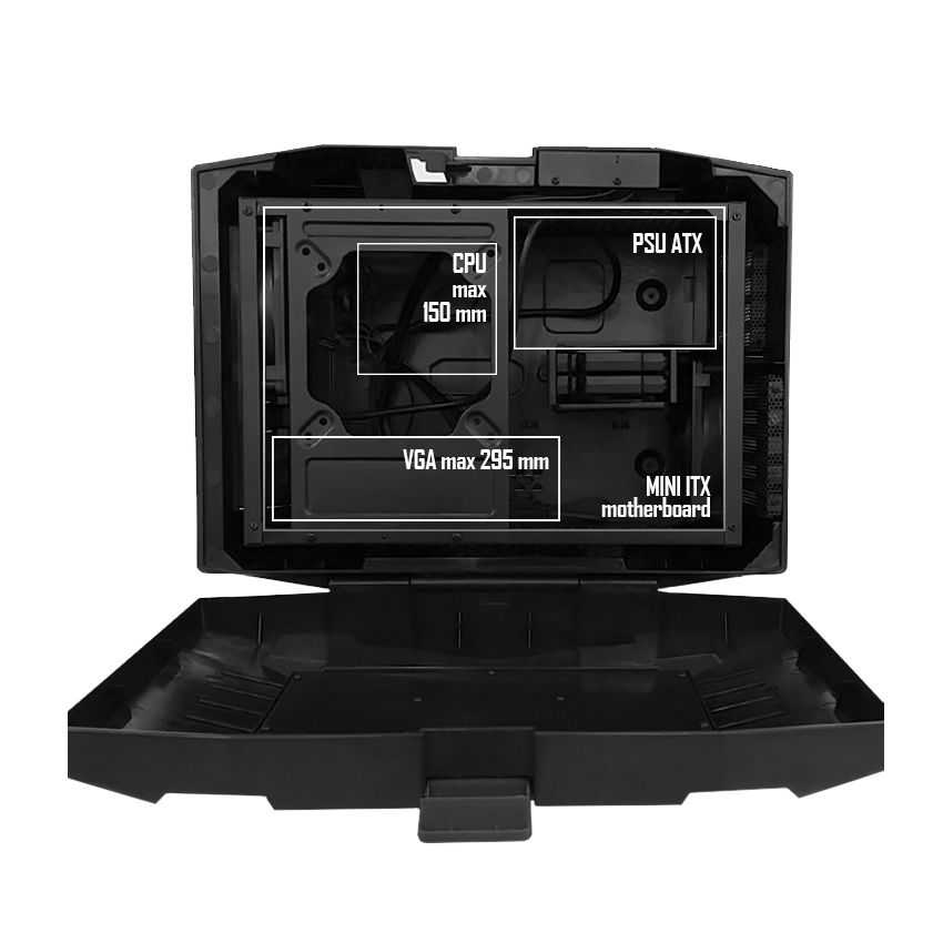 LANBX se presenta con un formato compacto y portable,pero con capacidad para albergar un equipo de altas prestaciones, ya que esposible instalar gráficas de hasta 295mm.