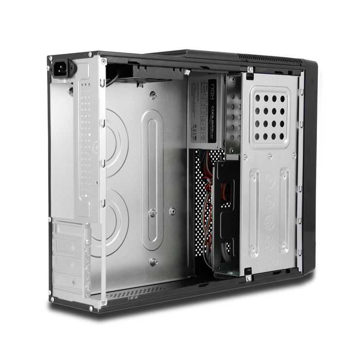 Mini torre para placas base micro ATX y mini ITX con sistema de altavoces integrado de gran potencia y lector de tarjetas. Incluye fuente de alimentación de 450W.