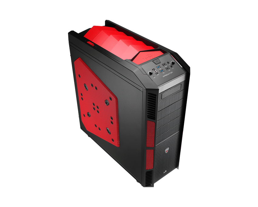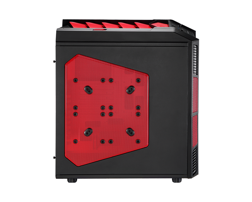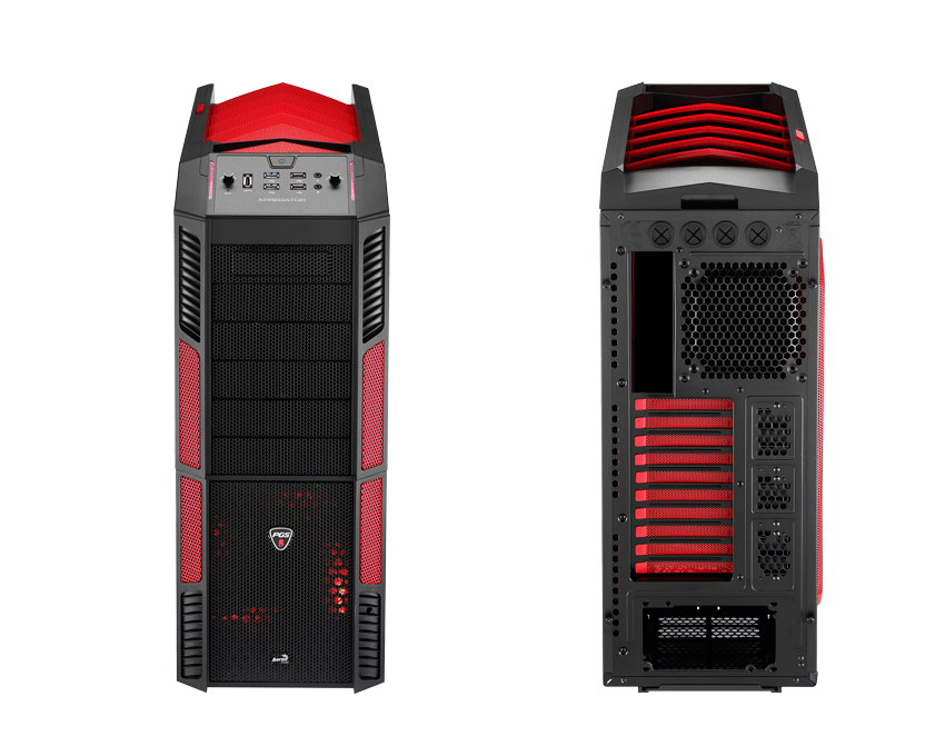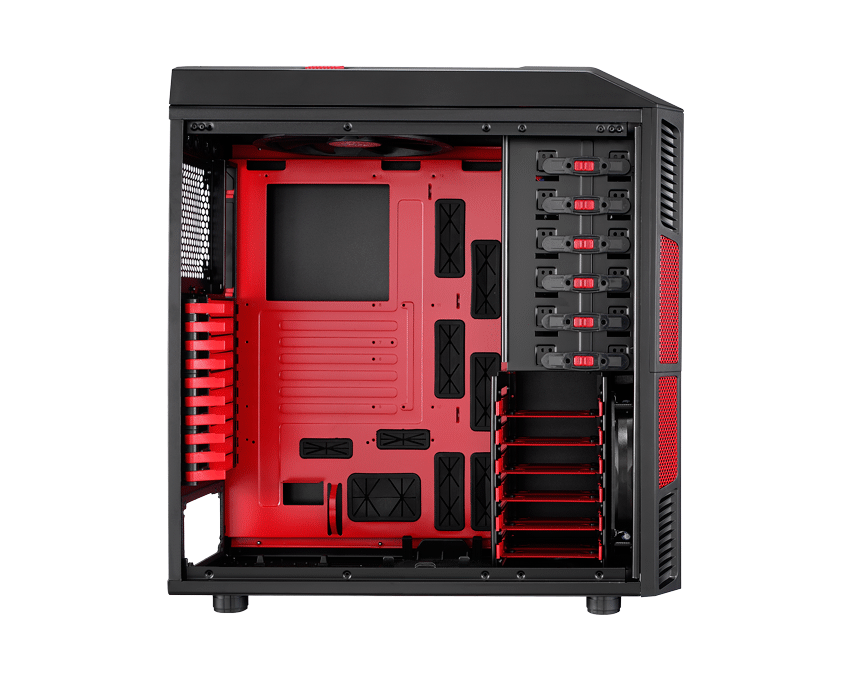 Super-Torre gaming Negro/Rojo. Formato XL-ATX. Incluye lateral con ventana. Instalación de la fuente de alimentación en la parte inferior. Soporta gráficas hasta 330mm. 7 Bahías externas: 6 x 5.25 y 1 x 3.5. 6 Bahías internas de 3.5. Conexiones 2 x USB 2.0 / 2 x USB 3.0 / eSATA / Audio HD Diseño Tool-Free para un fácil montaje. Ventiladores regulables con led de color rojo. Enrutamiento de cables. Orificios para refrigeración líquida.