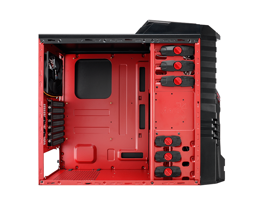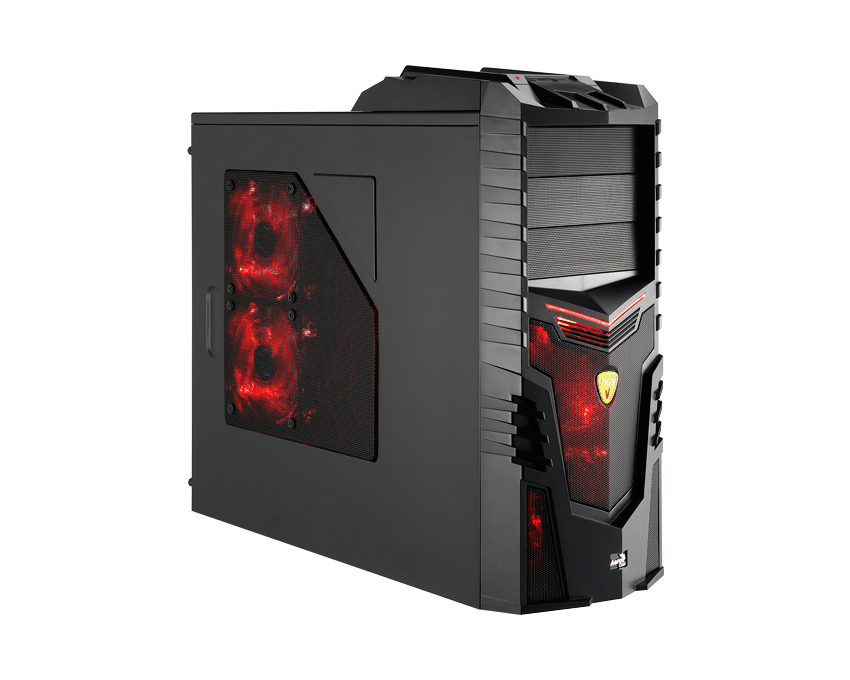 - Semitorre de alto rendimiento para Gamers . - Chasis de construcción sólida de - SECC Acero japonés 0.5mm. - Interiores totalmente negros y detalles en azul, un toque único. - Soporta tarjetas gráficas de hasta 400mm. - Soporta 3 x 5 1/4” , 1 x 3.5”(con adaptador), 1 x 2.5” HDD y máximo 4 x 3.5” HDDs (internos). - Kit “sin tornillos” de fácil instalación para los dispositivos 5 ¼”. - Sistema especial de guiado de cables en el chasis mediante agujeros perforados para un orden perfecto de los cables. - Agujeros especiales en la zona de la CPU, perforados en la placa MB parafacilitar el montaje del refrigerador. - Se pueden instalar 2 x 12 ventiladores en el lateral (opcional) / 1 x 12 en laparte trasera (incluido) y 2 x 12 en el frontal (uno incluido). - La ubicación de la fuente de alimentación en la parte inferior permite aspirar el aire frío y proporciona un mejor flujo de aire para el sistema. - Preparado para instalación de sistemas de refrigeración líquida interiores y exteriores - Los 2 x USB/Audio + Mic (AC’97 + HD audio) están en el frontal para un fácil acceso. Color: Negro y rojo