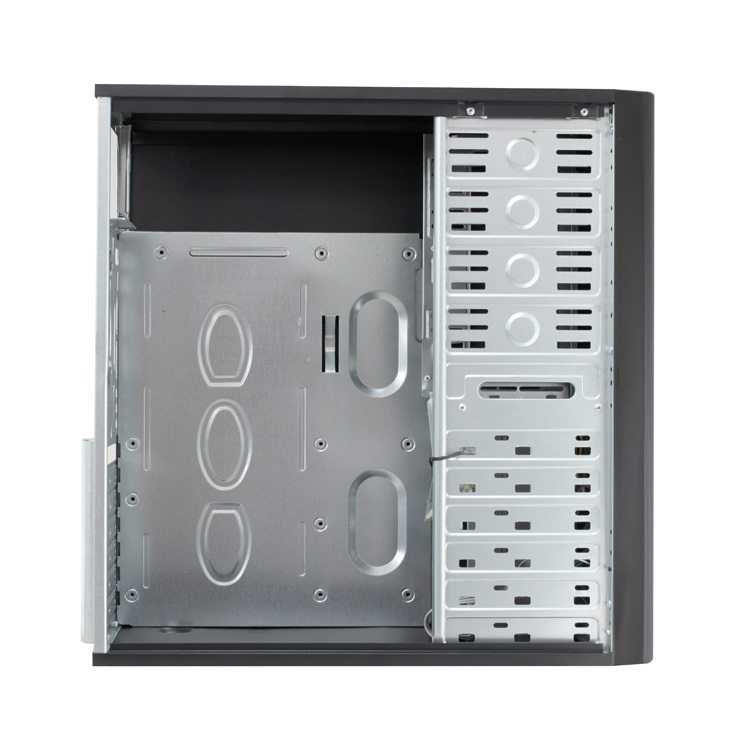Caja semitorre con fuente de alimentación de 500W con capacidad de instalar hasta 6 discos duros y hasta 3 ventiladores.
