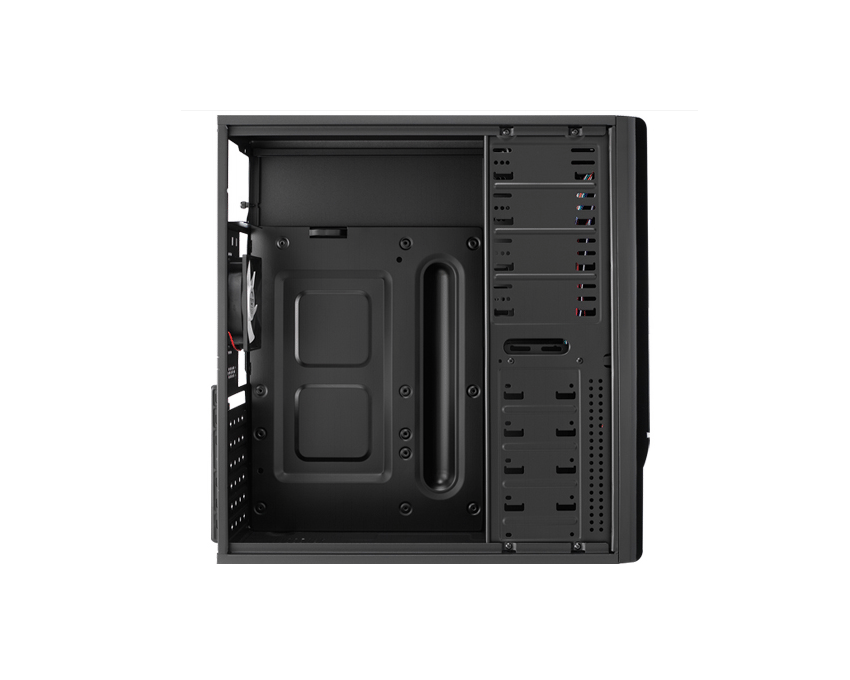 Su chassis ligero de alta calidad es completamente negro para un acabado impecable y cuenta con un ventilador trasero ultrasilencioso TACENS Aura PRO de 90mm para una máxima refrigeración con el mínimo ruido.