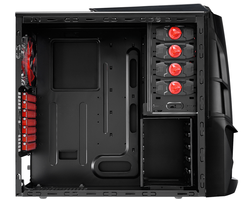 Detalles técnicos Factor de forma Midi-Tower Tipo PC Formas de factor de tarjeta madre soportadas ATX Color Negro, Rojo Ranuras de expansión 7 + 1 x 3.5" Material Materiales SECC Conectividad Entrada de audio Si Salida de audio Si Cantidad de puertos USB 2.0 2 Cantidad de puetos eSATA 1 Peso y dimensiones Ancho 460 mm Profundidad 200 mm Altura 540 mm Otras características Bahía interna de unidad de disco 5 x HDD Bahía externa de unidad de disco 5 x 5.25" Ventiladores opcionales 4 Interruptor Encendido/Apagado Si
