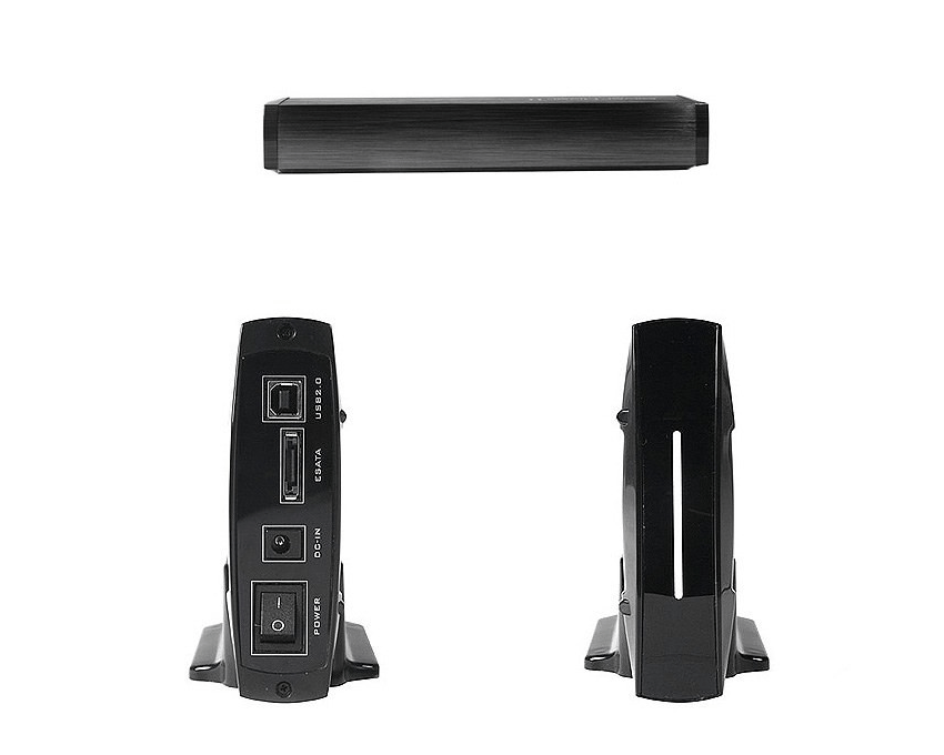 Caja externa para discos duros de 3.5'' con estructura y acabado en aluminio. Conexión eSATA para alcanzar velocidades de transferencia de datos de hasta 3 Gbps.