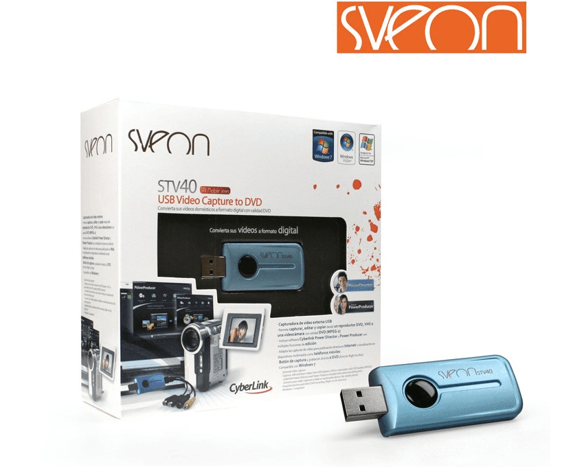 La capturadora externa para PC STV40 permite capturar y convertir vídeos domésticos a formato digital y calidad DVD desde videocámaras, vídeos VHS o reproductores VCD entre otros. Incluye los programas Power Producer y Power Director de Cyberlink para editar imágenes y crear discos multimedia de forma profesional.