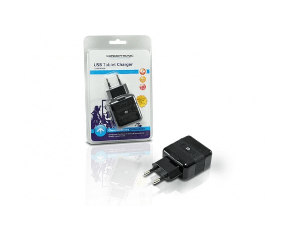 Este cargador dual USB es la solución para cargar su iPad/ tablet y la mayoría de dispositivos USB desde una toma de corriente. Este cargador dual USB es la solución ideal para cargar su iPad o tablet y la mayoría de sus dispositivos con conexión USB directamente desde una toma de corriente. El cargador dual USB funciona con voltajes desde 110 a 240 volt AC y los convierte automáticamente al voltaje para dispositivos USB (5 volt DC). Podrá cargar fácilmente sus dispositivos USB sin la necesidad de un PC o notebook. El cargador USB carga la mayoría de dispositivos que se pueden cargar por medio de un puerto USB, como (smart) phones, sistemas de navegación, reproductores MP3 y cámaras digitales. ¡Permite cargar 2 dispositivos USB al mismo tiempo gracias a su alta potencia de salida y 2 puertos USB!