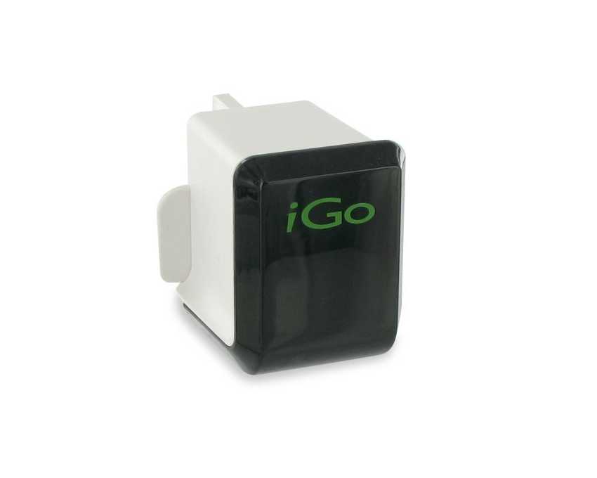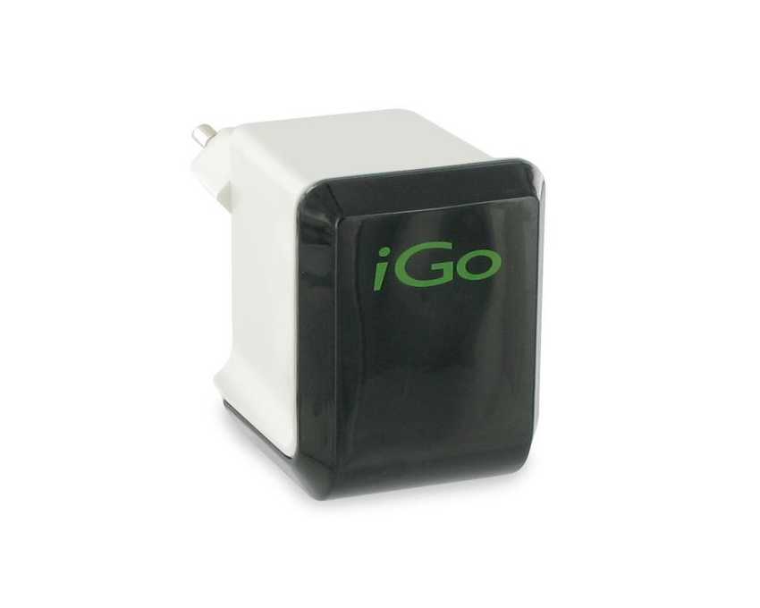 Cargador de pared carga rápida 2.1A con 2 USB Se conecta a cualquier toma de pared estándar - Un único cargador capaz de alimentar múltiples dispositivos - El cable de carga USB iGO incluido se conecta directamente a los puertos USB del cargador o a cualquier otro USB, y funciona con las clavijas de alimentación iGO para cargar tus otros dispositivos móviles - Las clavijas de alimentación iGO se venden por separado Especificaciones - Entrada: 100-240 VCA; 50/60 Hz - Salida: 5W - Dimensiones: 67 x 47 x 26 mm - Longitud del cable: 1,86m