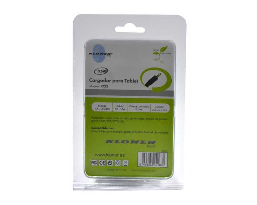 Cargador para Tablet Kloner 9V 1.5A conector 2.5 x 0.7mm