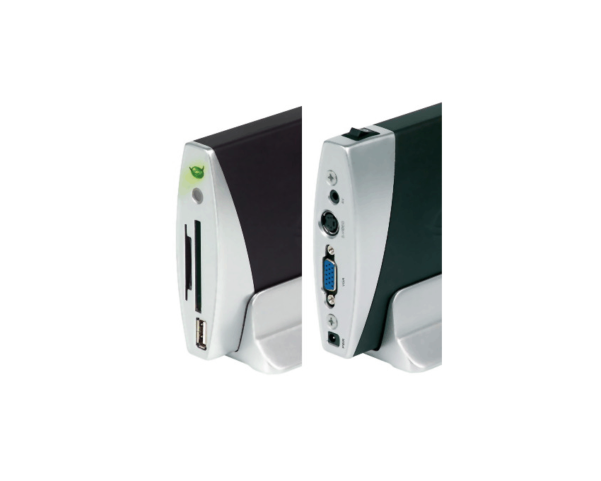 Especificaciones generales: Juega películas, la música, las fotos Lector de tarjetas all-in-one Puerto host USB 2.0 Señal de salida mediante VGA, composite, scart o S-Video.