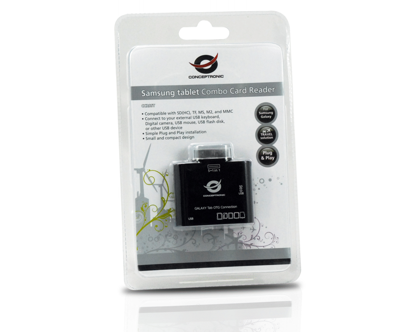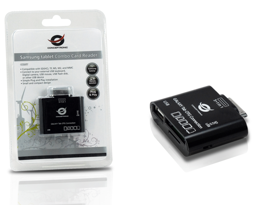 Con este lector de tarjetas, usted tiene un dispositivo elegante y compacto para su tableta de Samsung! Las tarjetas de memoria más populares para teléfonos móviles, cámaras digitales y reproductores de MP3 son compatibles con este compacto tablet Samsung Combo lector de tarjetas, más de 50 tipos diferentes de memoria cards.This tableta Samsung Combo Card Reader también puede conectarse a su teclado USB, digital cámara, ratón USB, disco flash USB u otro dispositivo USB. (Compatible con Samsung tableta N8010, N8000, P3108, P5110, P5100, P3110, P3100, P739, P6200, P6800, P6210, P7500, P7510, P7300, P7310, P1010 , P1000, P6810, P7100, N8013, T869)