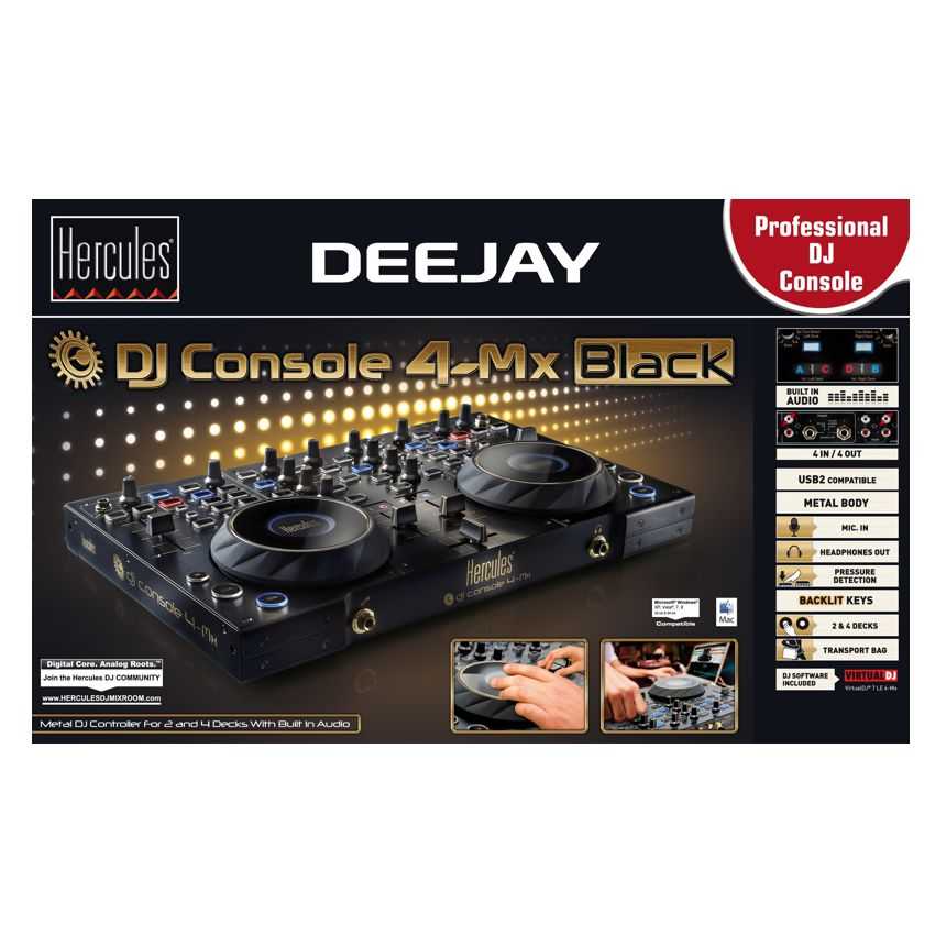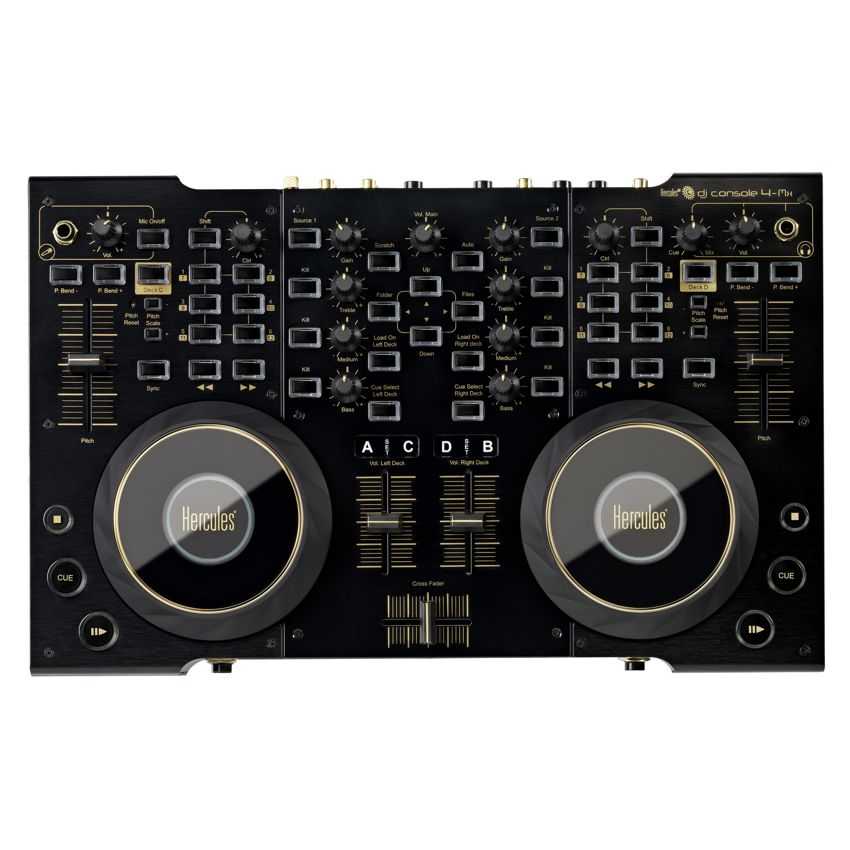 Control de 2 decks DJ Console 4-Mx Black controla 2 decks de la misma forma que DJ Console Rmx 2. Control de 4 decks DJ Console 4-Mx Black controla tanto 2 decks como 4 decks, con 2 botones para cambiar los decks: - un botón de cambio de deck en el deck izquierdo que convierte el deck A en el C y el deck C en el A. - un botón de cambio de deck en el deck derecho que convierte el deck B en el D y el deck D en el B.