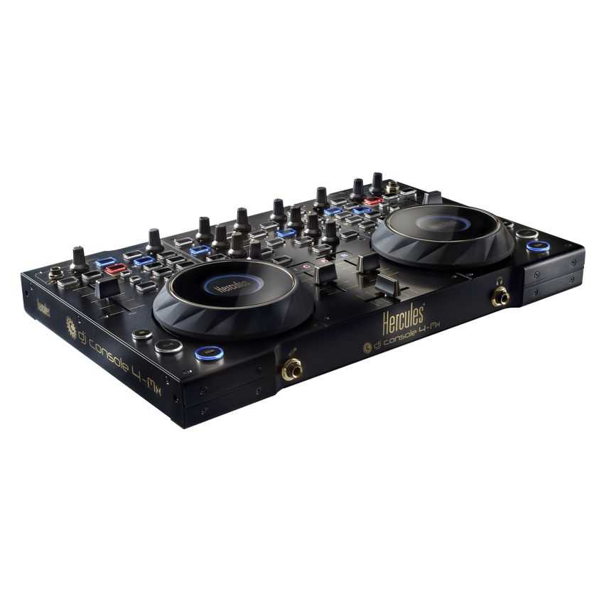 Descripción Estación de DJ grande para DJ nómadas que utilizan ordenador - Controlador de DJ metálico de 2/4 decks para mezclar 2 o 4 pistas de audio estéreo - 2 salidas estéreo (para mezclas y escucha previa) + 2 entradas estéreo (para equipo analógico) - Controlador metálico portátil: mezclador grande con bolsa de transporte incluida - Colores negro y dorado en estilo moderno - Envolvente: 40 cm x 25 cm 2 jog wheels grandes con detección de presión - Tamaño de la jog wheel: 12 cm de diámetro x 1.9 cm de altura - Sensores de peso, para detectar el peso de la mano en la parte superior de la jog wheel - Excelentes para hacer scratching y buscar dentro de las pistas de audio Control de 2 decks y 4 decks - 2 botones de cambio para convertir el deck A en el C, y el deck B en el D - 2 decks para mezclas de DJ estándar, al mezclar 2 pistas de audio - Mezclas con 4 decks: duplica los controles al mezclar 4 pistas Controladores - ASIO y WDM para Windows® - Core Audio para Mac OS® - Control MIDI: Windows y Mac Virtual DJ 7 LE incluido: software de mezclas de DJ de 4 decks - Para Windows ® XP / Vista /7 / 8 - Para Mac OS® 10.5 / 10.6 / 10.7 / 10.8