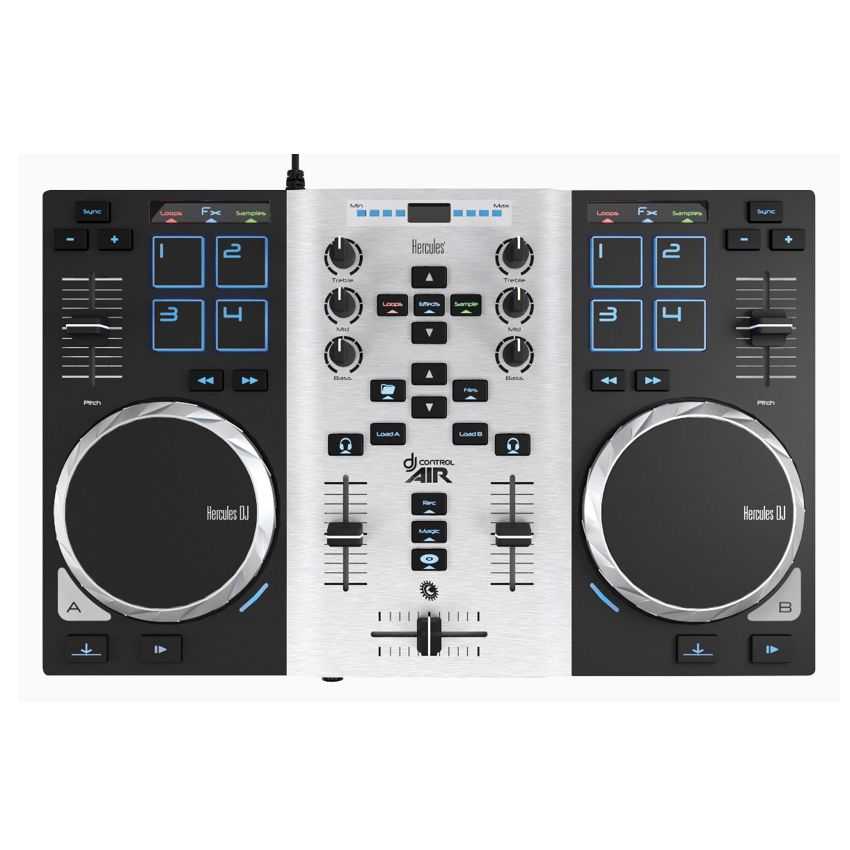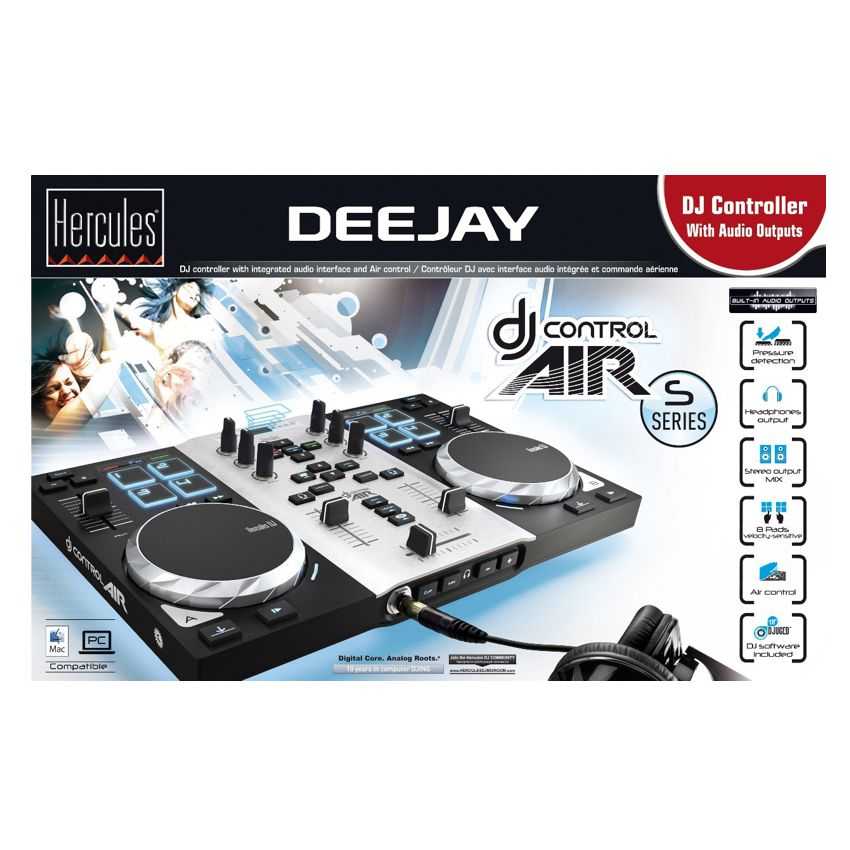 Descripción Hercules DJControl AIR. Auriculares: 3.5 mm/6.35 mm. Sistema operativo Windows soportado: Windows 7 Home Basic, Windows 7 Home Basic x64, Windows 7 Home Premium, Windows 7 Home Premium x64, , Sistema operativo MAC soportado: Mac OS X 10.5 Leopard, Mac OS X 10.6 Snow Leopard, Mac OS X 10.7 Lion, Mac OS X 10.8 Mountain Lion, , Velocidad mínima del procesador: 1,5 GHz. Ancho: 35 cm, Profundidad: 22 cm, Altura: 3 cm