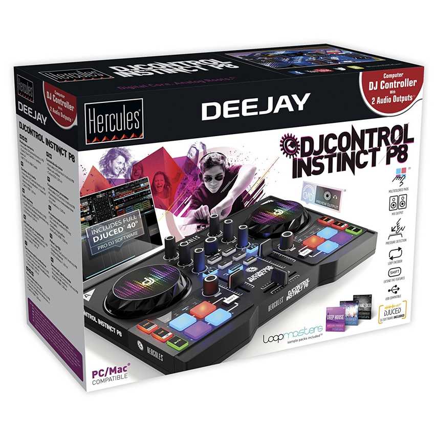 Descripción ¡Compacta, resistente y llena de funciones, la controladora DJControl Instinct P8 te permite mezclar y remezclar con una facilidad inigualable! Tras 5 años de éxitos, la controladora DJControl Instinct regresa totalmente sobrecargada, para ofrecer una amplia variedad de funciones para mezclar y remezclar: Controladora de DJ de doble deck 8 pads de samples con iluminación multicolor, que permite una mejor comprensión El modo de bucle se puede activar de manera temporal, usando los pads, o permanentemente, usando el codificador Ajuste y control de efectos Botones dedicados SYNC, Cue, Reproducir/Pausa MODOS independientes en cada deck Deck sensible al tacto y modo SCRATCH Ecualizador de 3 bandas con fader de volumen y crossfader Hay más funciones accesibles mediante el botón SHIFT Tarjeta de sonido integrada con 2 salidas RCA para mezclar y una salida mini-jack estéreo de 3,5 mm para hacer escucha previa de pistas en auriculares Cable USB desmontable Fácil de instalar, puerto alimentado por USB; sin necesidad de controladores Compatible PC/Mac