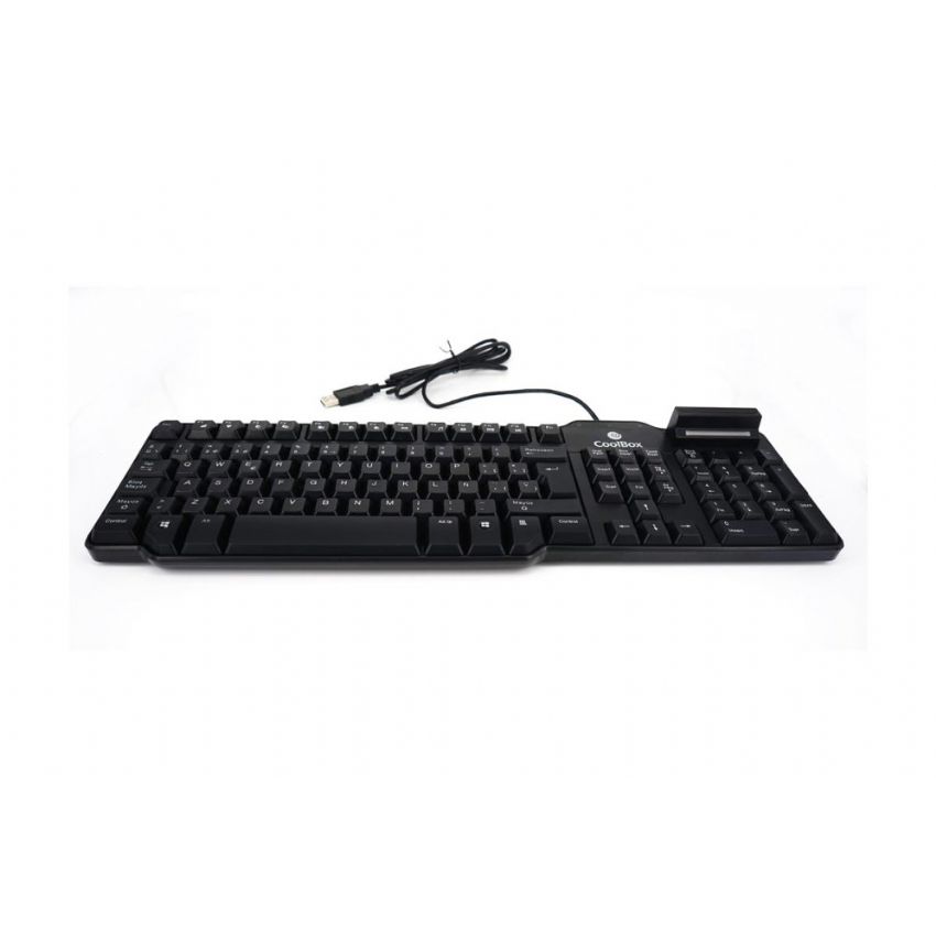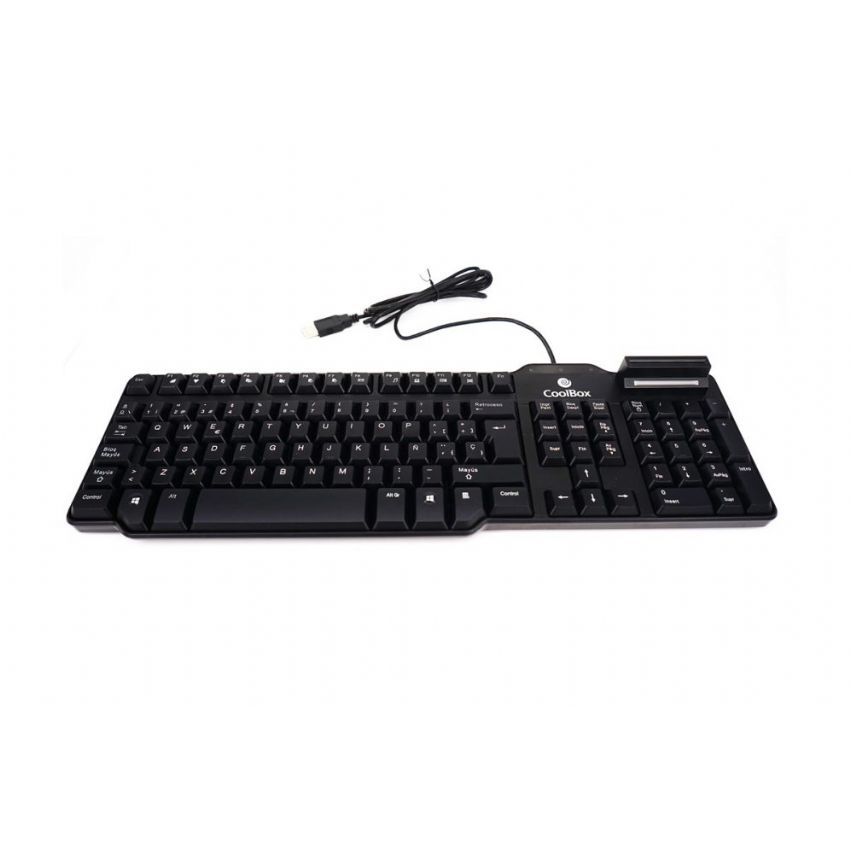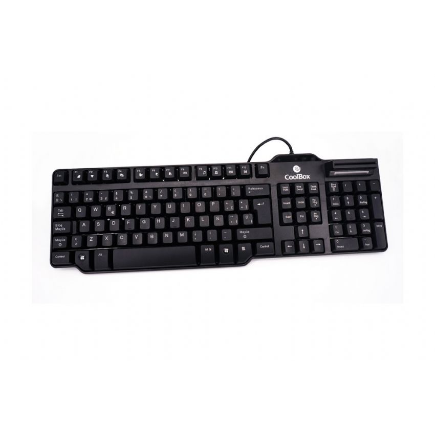 Descripción - 106 teclas con distribución española - Tecnología de membrana, que proporciona un funcionamiento silencioso - Lector de DNIe y smartCard integrado - Protocolos soportados: SIE4418, SLE4428, SLE4432, SLE4442, SLE4436, SLE5536, SLE6636, T1 - Soporta tarjetas de memoria I2C - Conexión USB para PC y portátiles - Longitud del cable: 1,5 m - Dimensiones: 443.4 x 148.81 x 46.96 mm