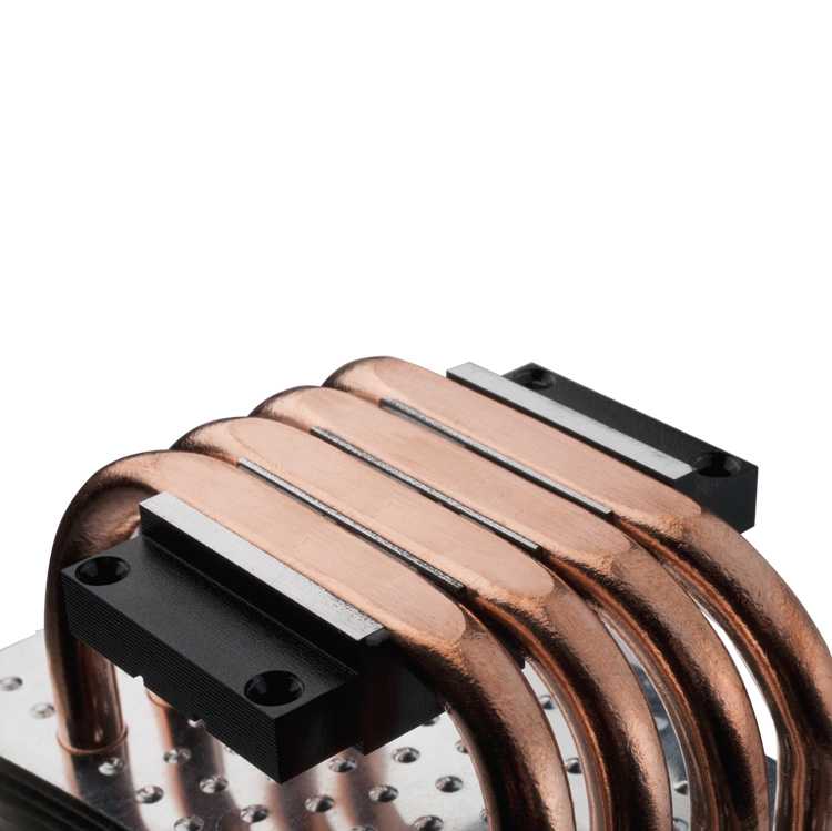 Incluye cuatro heatpipes de cobre que conducen el calor desde la base hasta el disipador de una forma eficiente.
