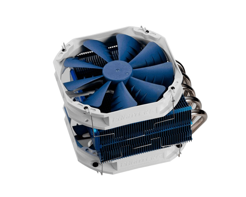 Cooler para CPU con sistema multisocket compatible con Intel y AMD. Incluye dos ventiladores de 140 mm con 9 aspas en color azul, 5 heatpipes dobles y adaptador PWM para un control automático de la velocidad.